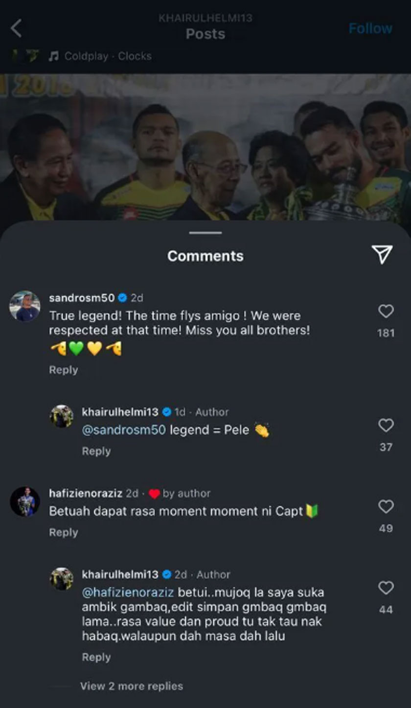 "Masa berlalu dengan pantas. Kita sangat dihormati ketika itu, rindu anda semua!," balas Sandro.