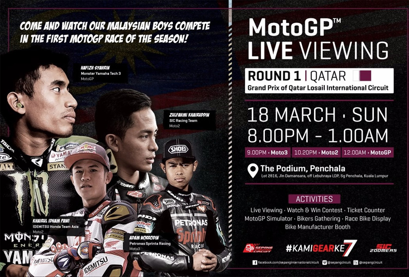 Bagi saingan pertama MotoGP 2018, SIC akan mengadakan tontonan secara langsung di The Podium, Penchala pada 18 Mac ini.