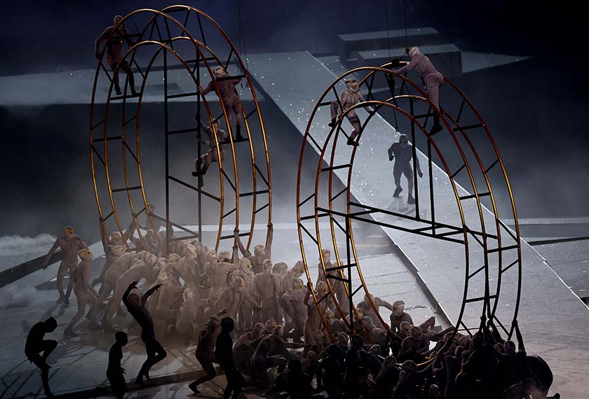 LA28 kemudian menghiburkan penonton di Paris melalui penstriman persembahan penuh aksi dalam segmen video dengan Tom Cruise melompat dari kapal terbang untuk membawa bendera Olimpik ke mercu tanda Hollywood.