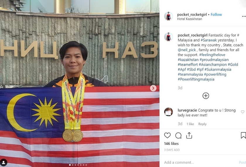 Dalam acara yang berlangsung dari 2 Disember sehingga 5 Disember lalu, atlet angkat berat wanita itu berjaya meraih dua pingat emas dan dua pingat perak dalam Kejohanan Angkat Berat Asia 2019 di Almaty.