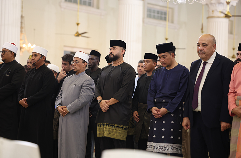 JOHOR BAHRU: Pemangku Sultan Johor Tunku Ismail Sultan Ibrahim hari ini berkenan berangkat menunaikan solat Maghrib dan solat hajat berjemaah bersama pasukan bola sepak kebangsaan Malaysia, Harimau Malaya serta pasukan bola sepak kebangsaan Palestin.