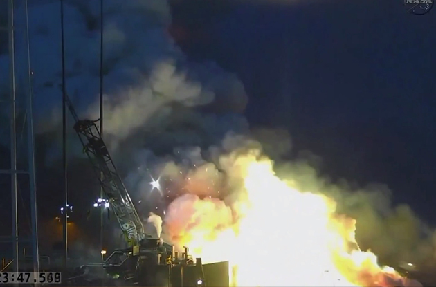 This still image from NASA video shows an Orbital Sciences Corporation unmanned spacecraft exploding at Wallops Island, Virginia, six seconds after launch. - AFP Photo/NASA