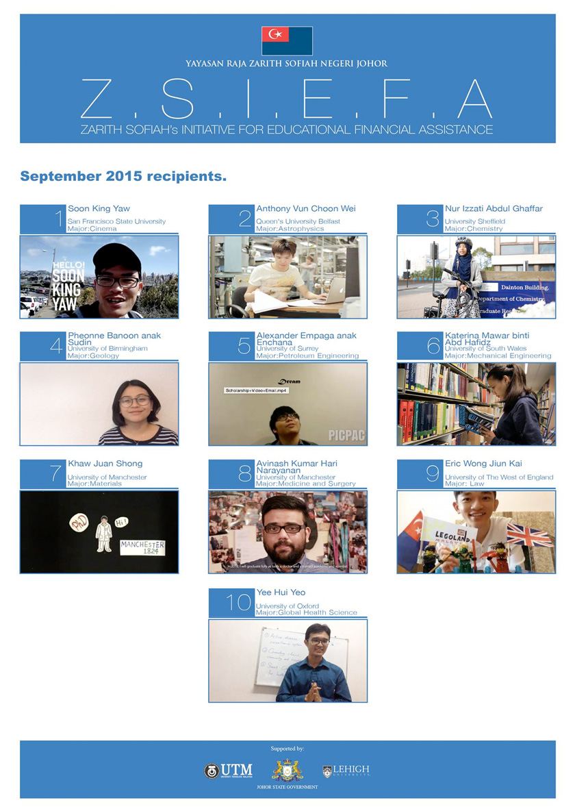 Some 100 Malaysian students overseas have been named as recipients of the Zarith Sofiah’s Initiative for Educational Financial Assistance (ZSIEFA) through the Zarith Sofiah Foundation.