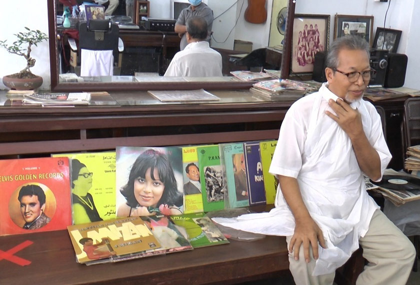 "Saya kata ni bukan CD... inilah orang kata piring hitam. Rekod, orang panggil rekod.. Depa nak, pasanglah... Seronok, bila kita pasang lagu lama, kita teringat masa-masa lama.. memang seronok," ujarnya.