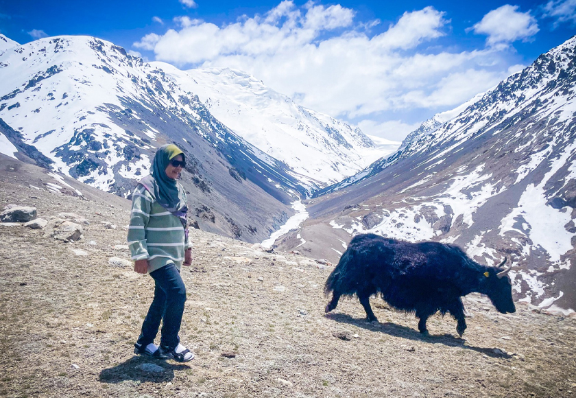 Di lapangan rumput itu juga akan terlihat ratusan yak ternakan penduduk tempatan yang dilepaskan ke puncak untuk mendapatkan rumput segar. Kawanan yak itu akan tinggal di atas gunung ini sehinggalah musim sejuk tiba dan mereka akan kembali ke kampung semula.