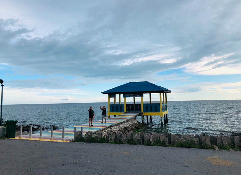 Deretan batu yang dibina di tebing menjadi penampan kepada ombak dan hakisan air laut, menjadikan suasana di sini tambah menarik, bak lukisan 3D.