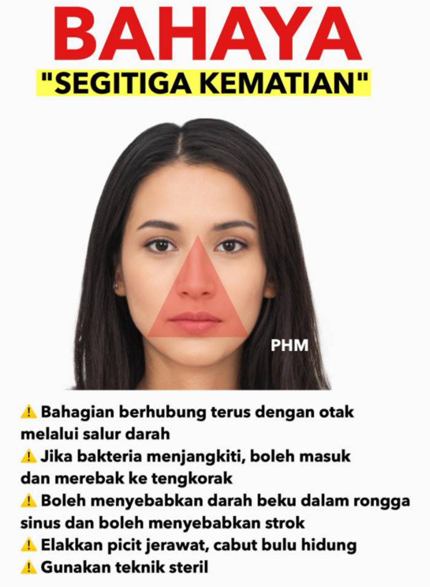 JIKA selama ini anda suka mencabut bulu hidung atau memicit jerawat di sekitar segi tiga muka, baik anda hentikan tabiat itu bermula hari ini!