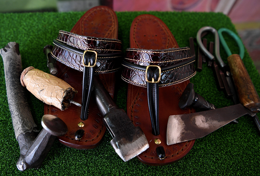 KEPALA BATAS: Melihat hasil kerja tangannya yang begitu halus dan teliti, tidak hairanlah capal tradisional ataupun selipar kulit buatan tangan untuk kaum Adam dalam masyarakat Melayu masih mendapat tempat di hati peminatnya.
