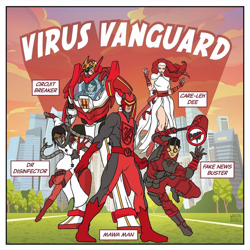 “Virus Vanguard” dianggotai watak adiwira seperti “Circuit Breaker”, “Fake News Buster”, “Dr Disinfector”, “MAWA Man” dan “Care-Leh Dee”.