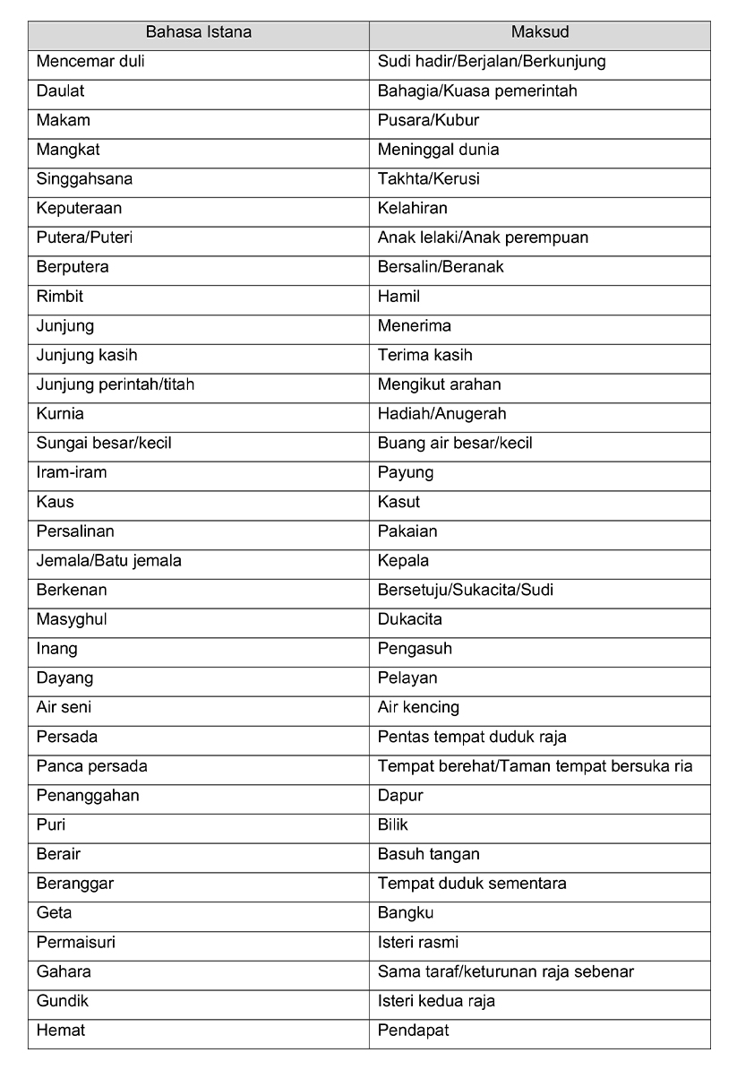 Bahasa istana menjadi khazanah berharga dalam dunia kebahasaan bahasa Melayu.