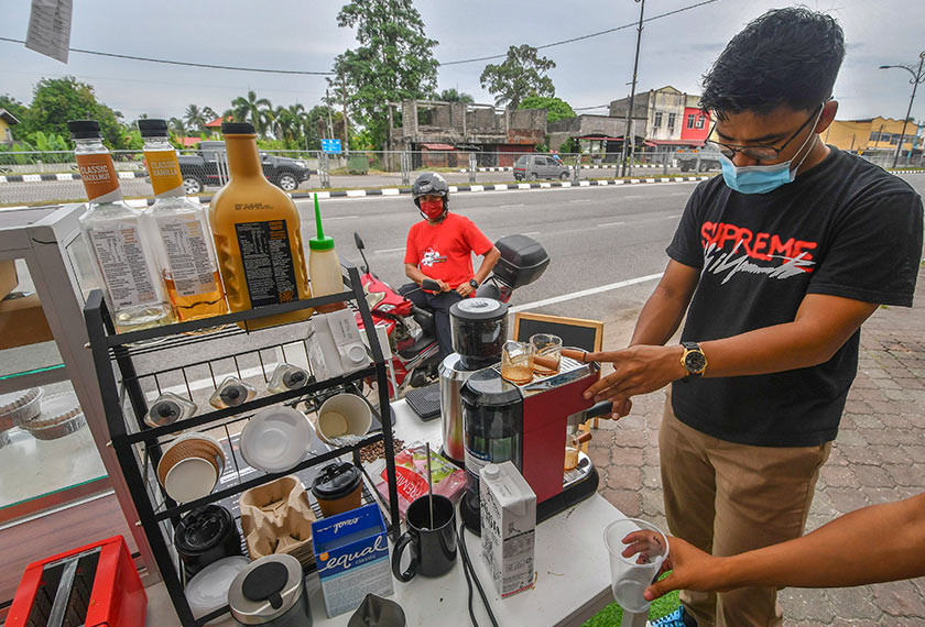 Pemilik LOH Barbershop, Abdullah Thariq Abdullah, 26, tidak menyangka kemahiran membancuh kopi yang dimiliki sejak lebih setahun lepas, kini memberinya pendapatan seterusnya membantu menampung perbelanjaan berikutan perniagaan kedai gunting rambutnya terjejas dalam tempoh pandemik COVID-19.