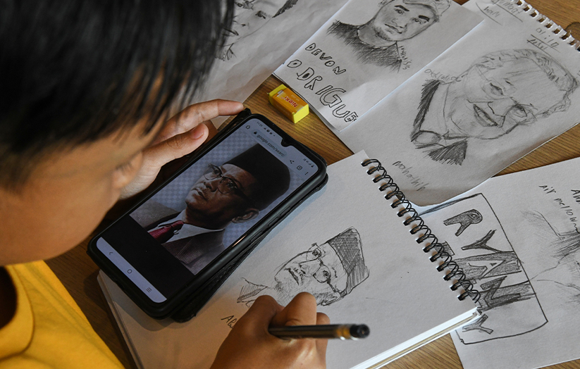 Katanya anaknya itu memang sentiasa membawa buku lukisan dan pensel khas untuk melukis potret serta tidak mengira tempat atau waktu untuk melukis, kerana dia memang sangat gembira setiap kali dapat menyiapkan lukisannya.