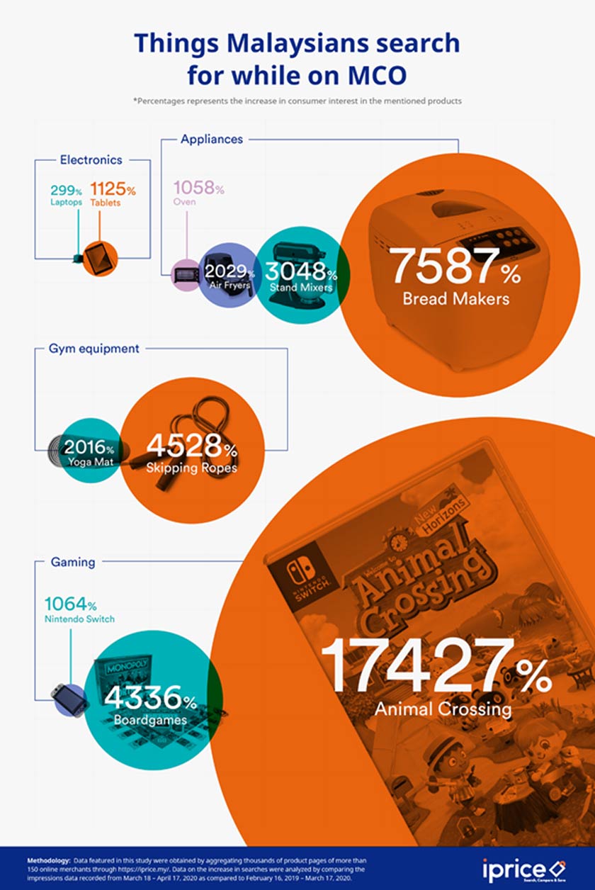 Penyedia perbandingan produk dan harga di Asia Tenggara, iPrice Group yang menjalankan kajian itu berpendapat rakyat Malaysia berkemungkinan memenuhi kebosanan terkurung di rumah dengan menghiburkan pasangan masing-masing
