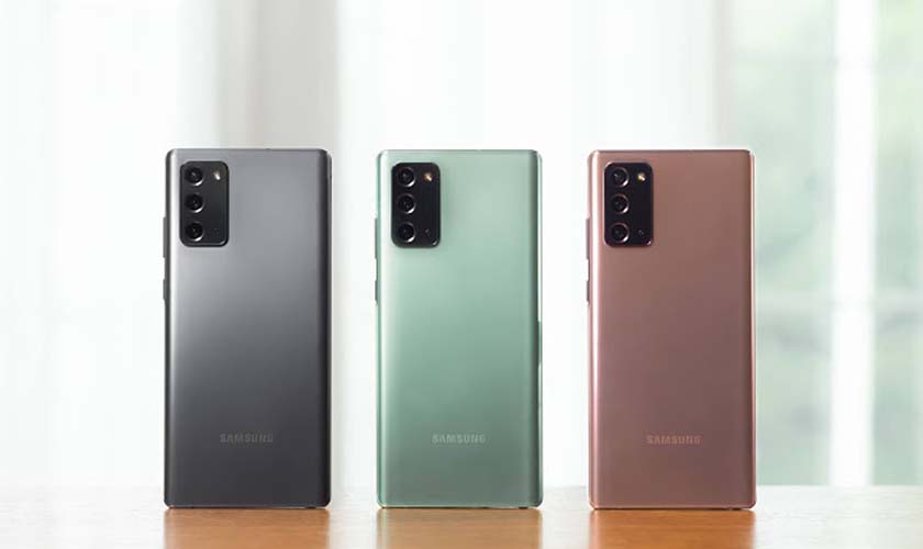 Bahagian belakangnya lebih licin atau slick berbanding dengan Note 20 yang menggunakan kaca-plastik (glasstic) dengan warna Mystic Bronze, Mystic Green, Mystic Grey.
