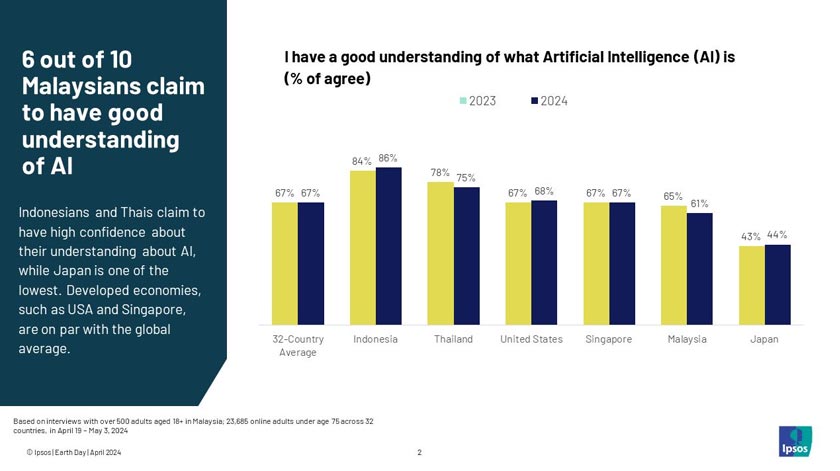 Dua pertiga daripada responden global mengakui mempunyai pemahaman yang baik tentang AI, angka yang sedikit lebih rendah di Malaysia berbanding negara-negara jiran Asia Tenggara seperti Indonesia, Thailand, dan Singapura.
