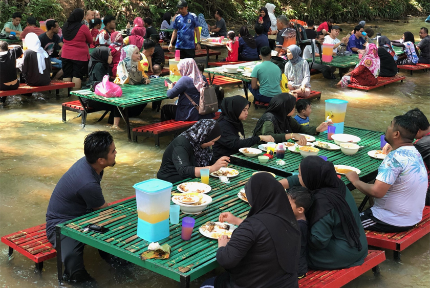 BALING: Menjamu selera sambil kaki terendam dalam kedinginan air sungai yang jerih dan dingin pasti mengujakan.