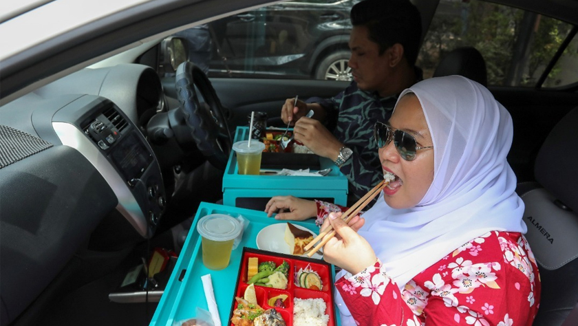 Menariknya, setiap hidangan disediakan pada dulang khas yang sesuai untuk ruang sempit antara tempat duduk pemandu dan stereng kenderaan.