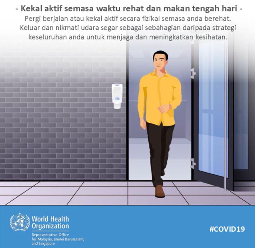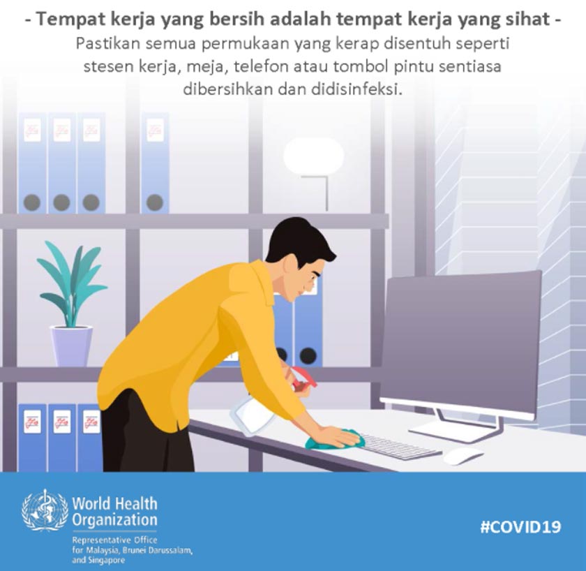 Berita ini turut disambut baik oleh kakitangan yang bekerja di pejabat, namun sebelum anda kembali bertugas, ikuti 11 saranan World Health Organisation (WHO) demi kesihatan kita di tempat kerja.