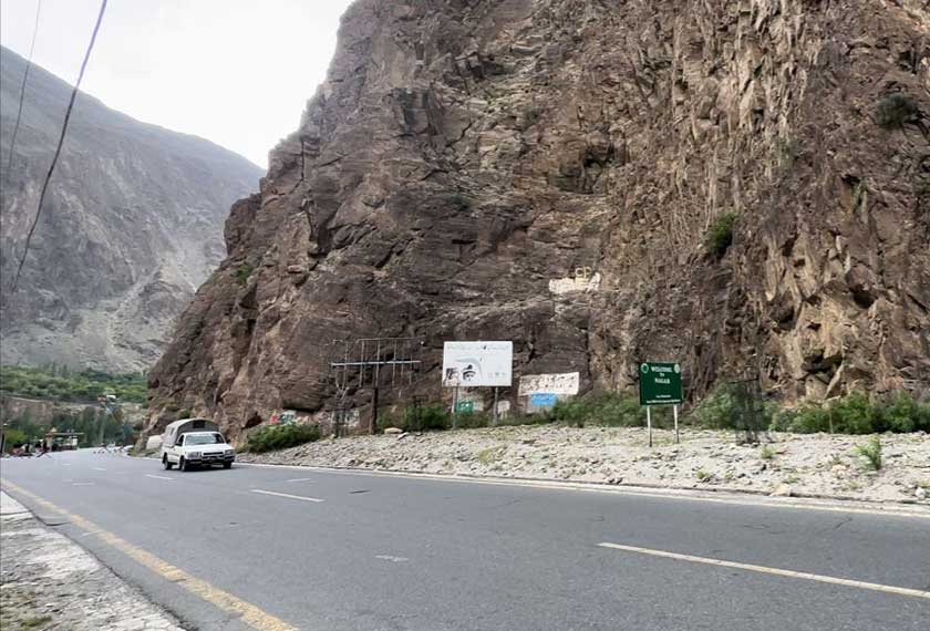 1) Titik pertembungan plat bumi. Apabila tiba di lokasi di Lembah Chalt ini, halakan pandangan mata ke tebing bukit ini kerana di situlah tempat bertembungnya plat bumi Euro-Asia dan India hingga terbentuk jelas pada rupa bentuk, corak lapisan dan formasi fizikal batuannya.