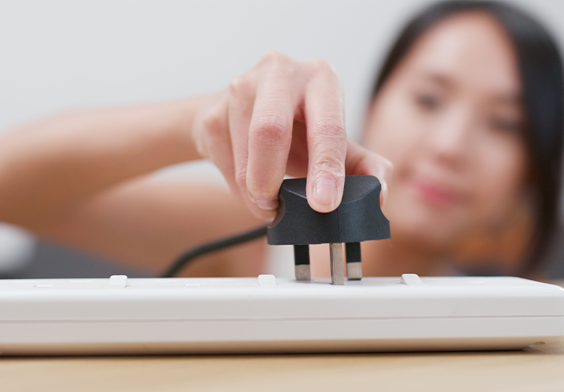 2. Pastikan semua soket dalam keadaan baik dan tidak dibebankan dengan penyesuai (adapter) dan kabel penyambung (extension cable);
